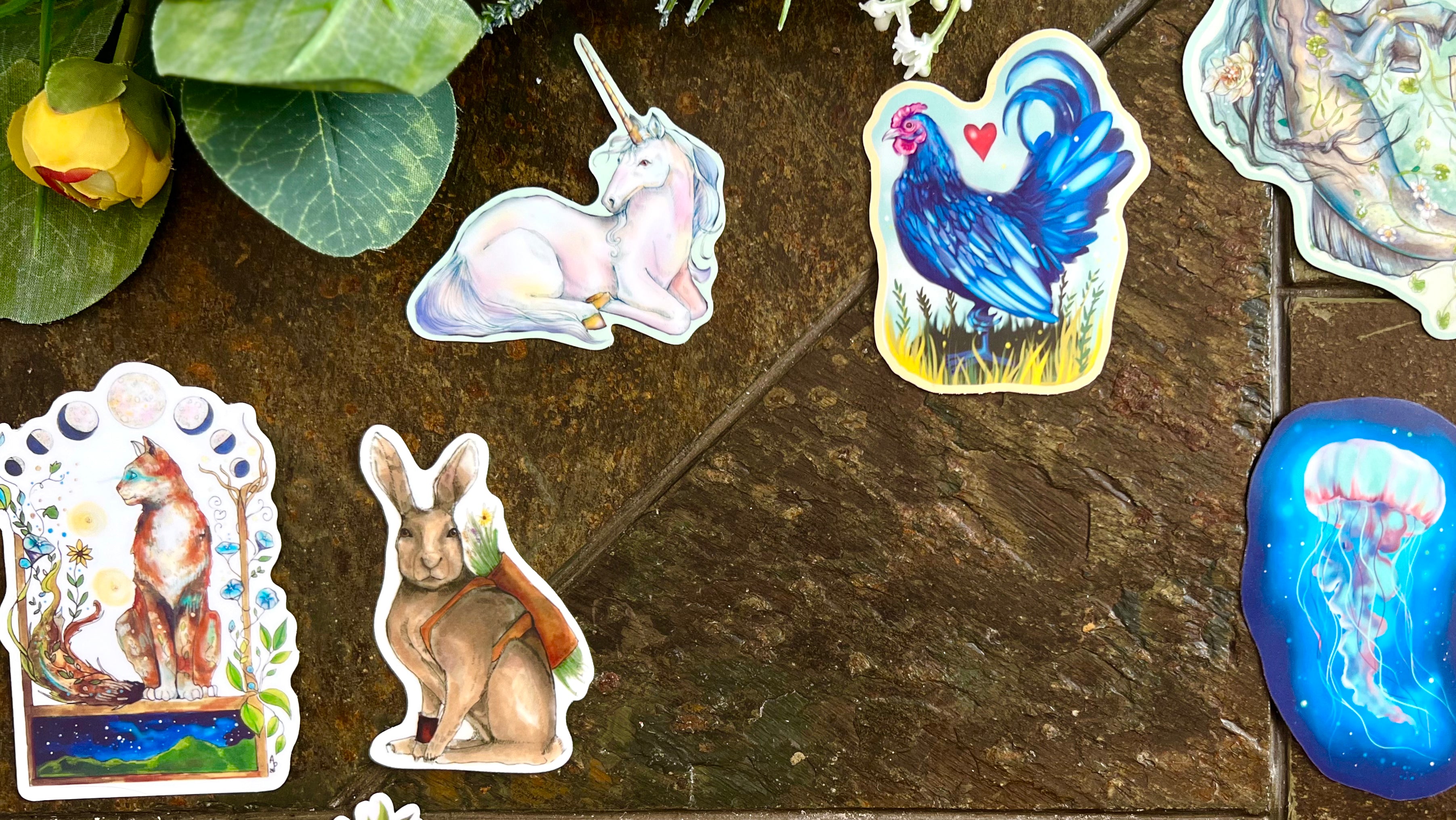 Come along on an enchanting journey to distant realms. You may encounter magical beasts, lonely travelers, or gods made mortal along the way. Each print, card, and sticker is of the highest quality, and created by hand in small batches.
